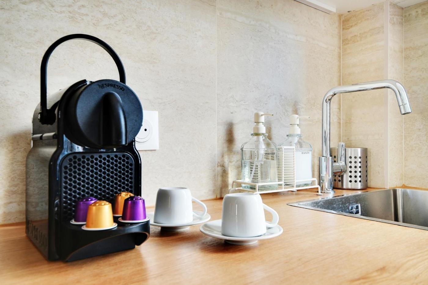 Cet appartement se compose de 1 chambre, dun salon, dune cuisine entièrement équipée avec un réfrigérateur et une machine à café, ainsi que de 1 salle de bains avec une douche et des articles de toilette gratuits. Des serviettes et du linge de lit sont à votre disposition.