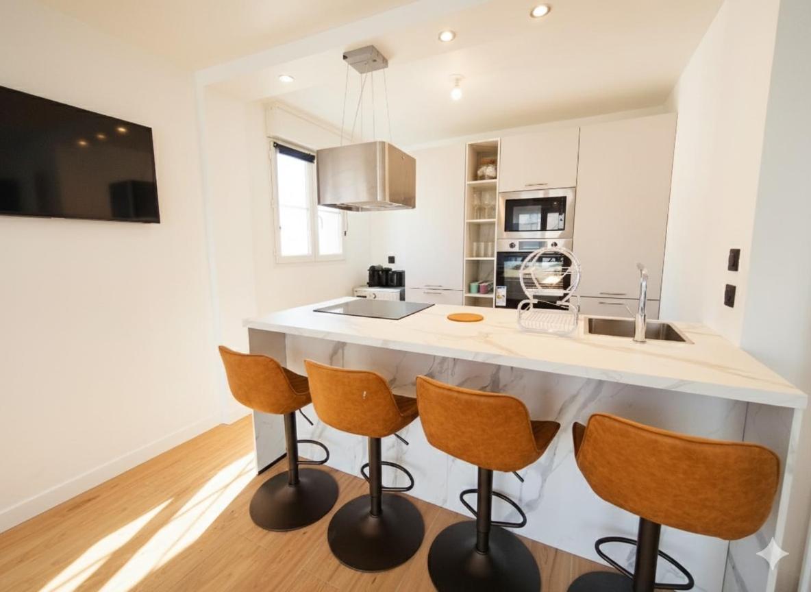 Appartement 2 Chambres. This apartment is comprised of 1 living room, 2 separate bedrooms and 1 bathroom with a shower and free toiletries. Guests can make meals in the kitchen that is fitted with a stovetop, a refrigerator, a dishwasher and kitchenware. Featuring a terrace with city views, this apartment also offers a washing machine and a flat-screen TV. The unit offers 4 beds.