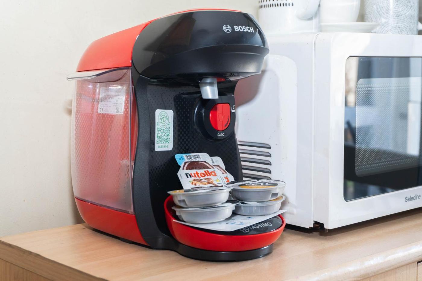 Cet appartement comporte 1 chambre, une télévision à écran plat, ainsi qu’une cuisine.