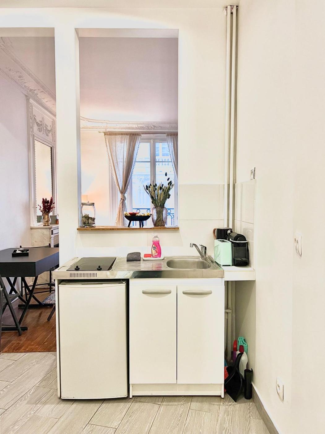 La kitchenette est pourvue d’un réfrigérateur et d’une plaque de cuisson. Elle est également dotée d’une machine à café et d’une bouilloire.