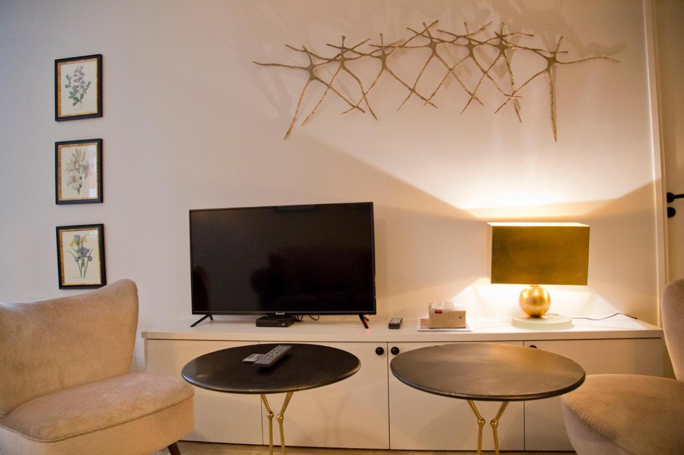 Appartement 2 Chambres. Guests can make meals in the kitchen that features a stovetop, a refrigerator, a dishwasher and kitchenware. The spacious apartment features a flat-screen TV with streaming services, a washing machine, a private entrance, a tea and coffee maker as well as ancourtyard view. The unit has 3 beds.