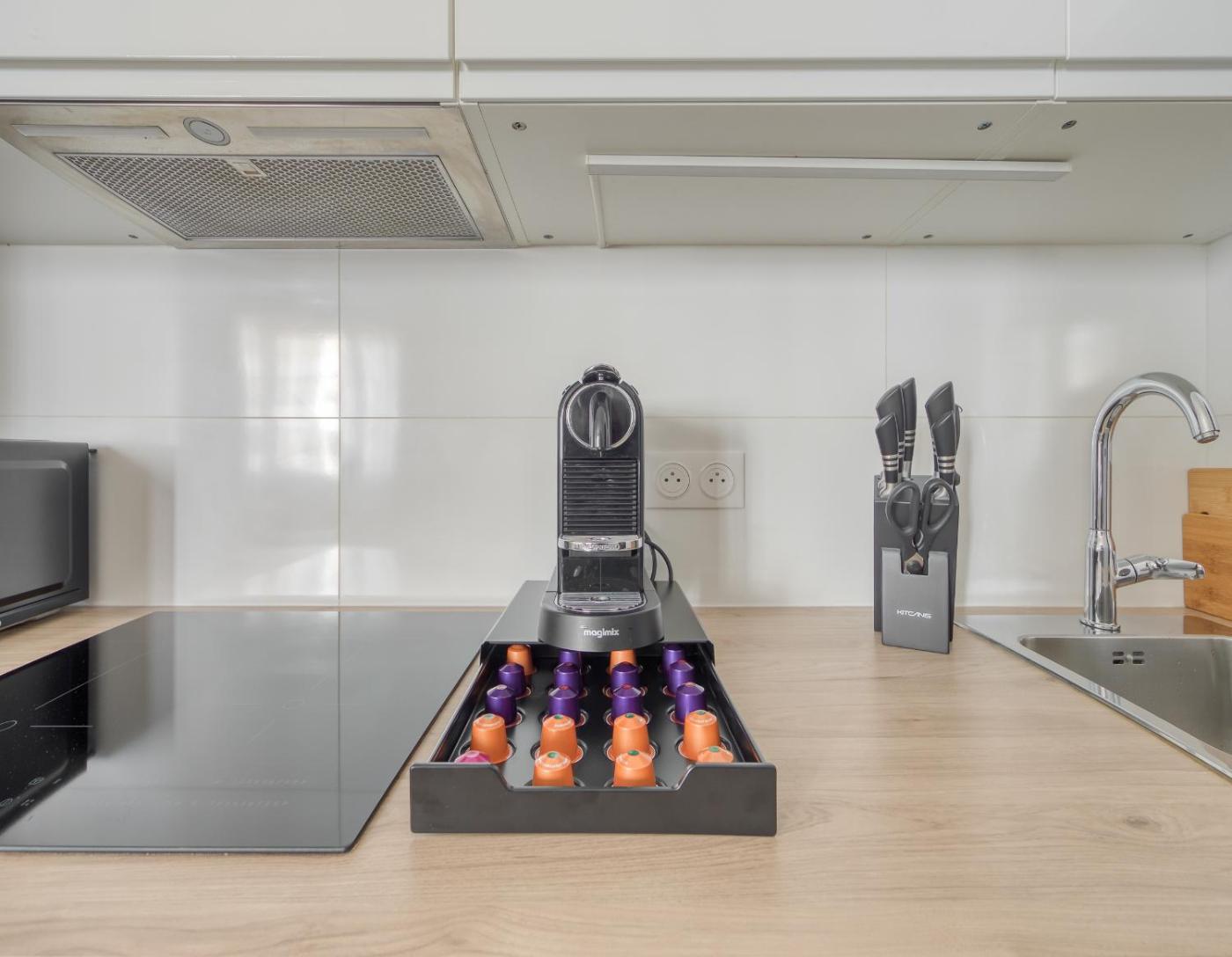 Appartement 1 Chambre. The well-fitted kitchen has a refrigerator, a dishwasher, kitchenware and an oven. This apartment is air-conditioned and features a flat-screen TV, a washing machine, a coffee machine and a high chair for children. The unit offers 2 beds.
