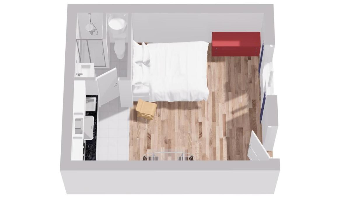 S’ouvrant sur une terrasse, cet appartement comporte 1 chambre et une cuisine entièrement équipée.