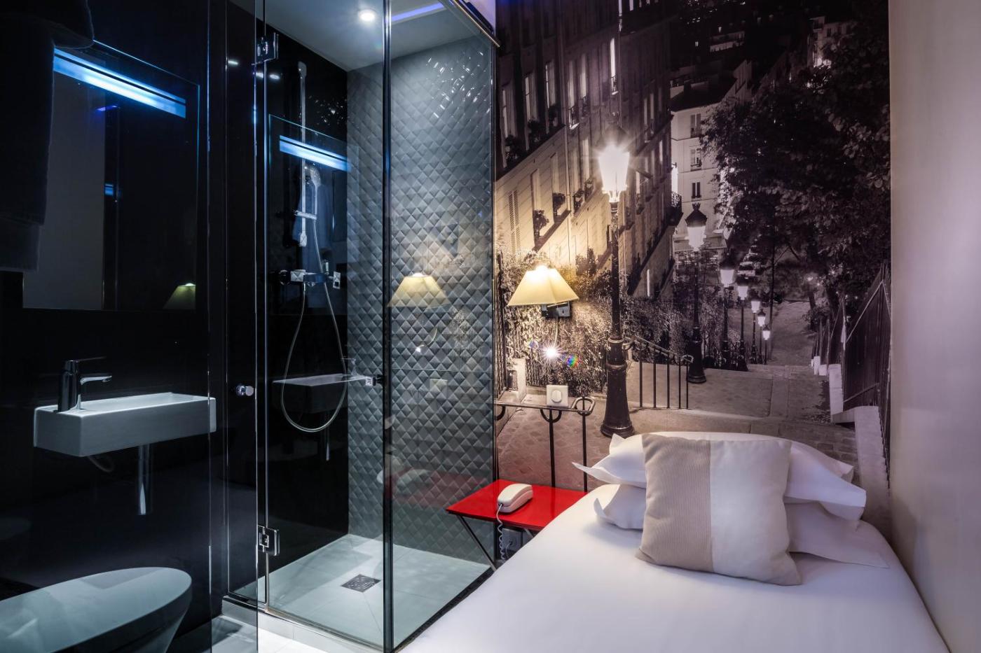Chambre Simple avec Douche. Décorée dans un style français classique, cette chambre est équipée d’une télévision par satellite, d’un coffre-fort et d’un minibar. ;
