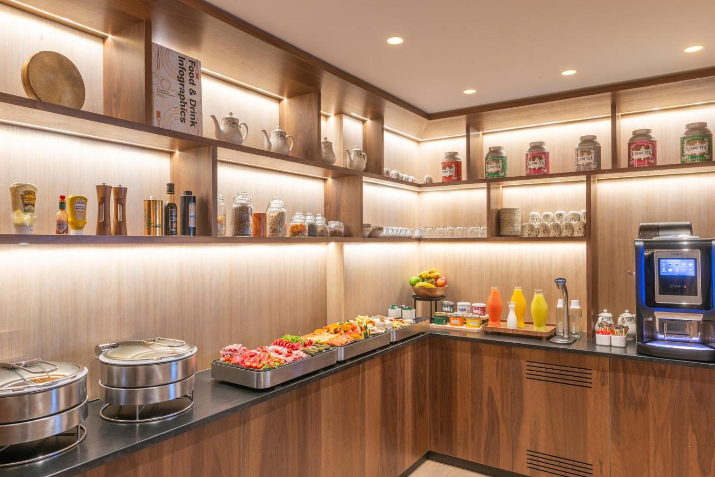 Un petit-déjeuner buffet est servi tous les jours et vous pourrez vous détendre dans les canapés Chesterfield du salon.