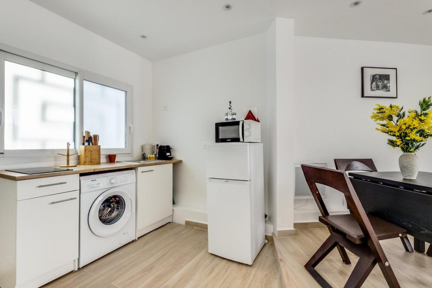 Appartement 1 Chambre. This apartment comes with 1 bedroom, a kitchen and 1 bathroom with a shower and a hairdryer. The fully equipped kitchen has a refrigerator, kitchenware, a microwave and a toaster. The apartment features a TV, a washing machine, a coffee machine, as well as heating. The unit has 1 bed.