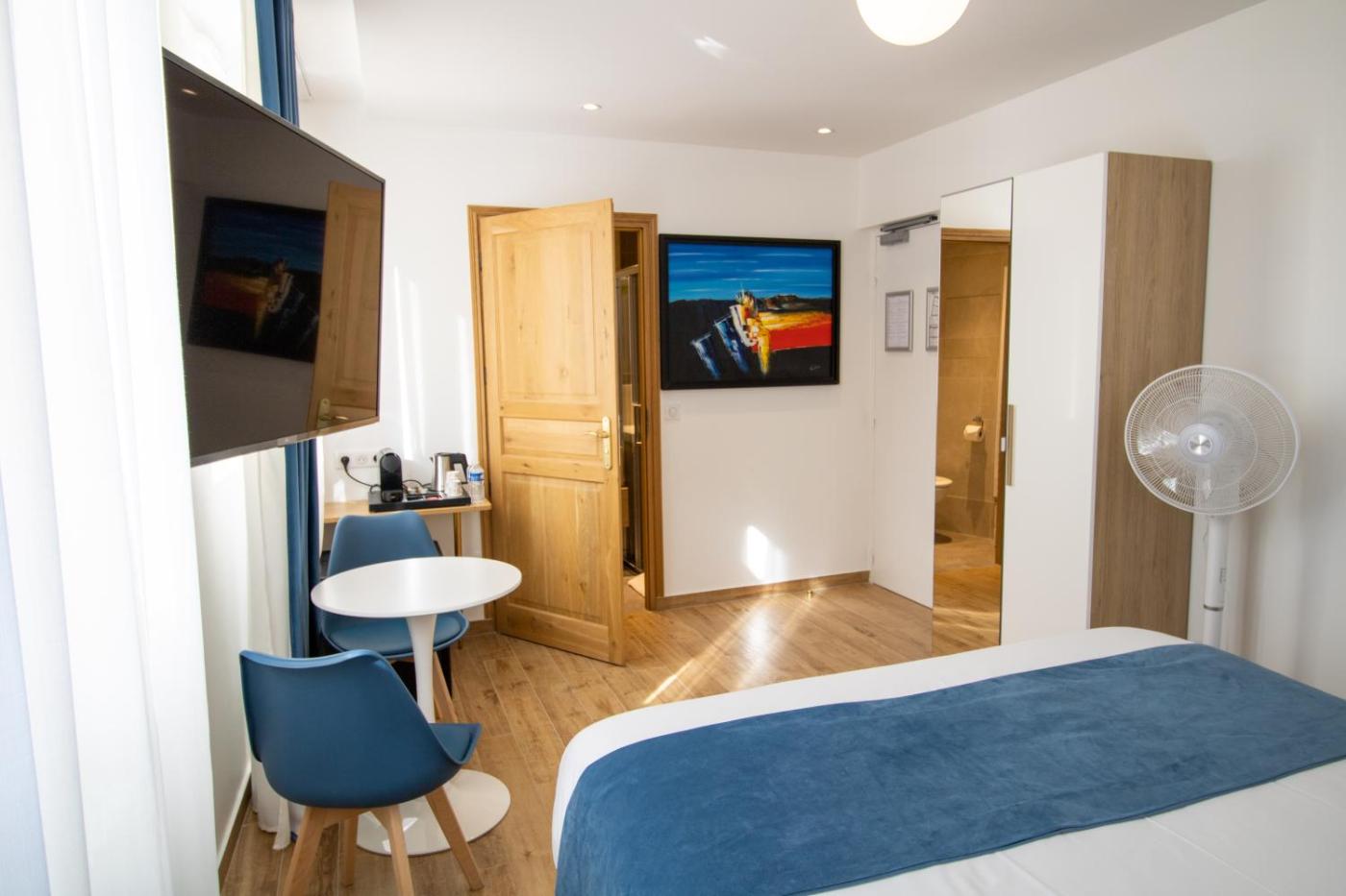 Petite Chambre Double Mansardée. Cette chambre double comprend une salle de bains privative avec une douche à litalienne, un sèche-cheveux et des articles de toilette gratuits. Revêtu de carrelage, cet hébergement dispose également dun plateaubouilloire, dune armoire, du chauffage et dune télévision à écran plat. Enfin, vous profiterez de 1 lit. ;
