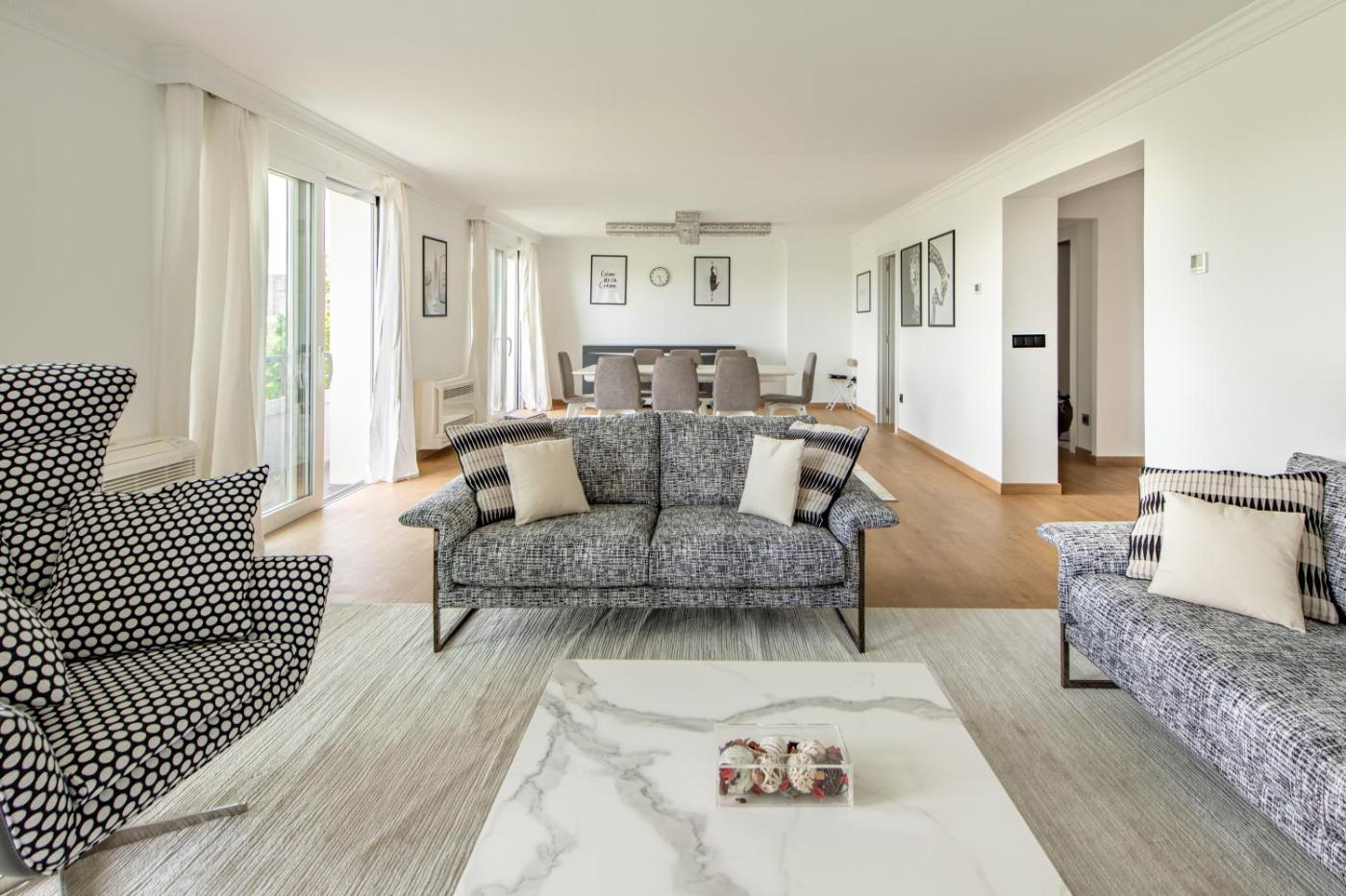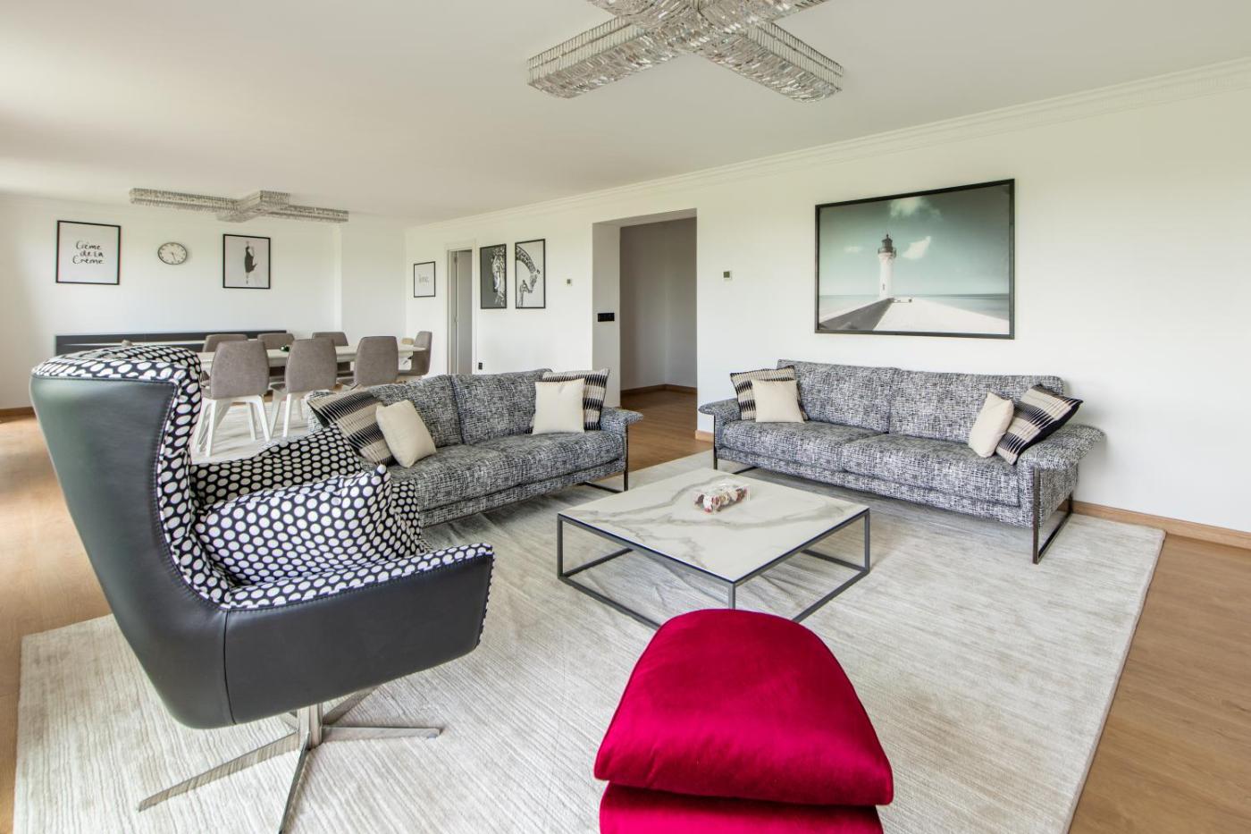 Cet appartement compte 3 chambres, une cuisine avec un réfrigérateur et un lave-vaisselle, une télévision à écran plat, un coin salon, ainsi que 3 salles de bains comportant une douche. Cet hébergement met à votre disposition des serviettes et du linge de lit.