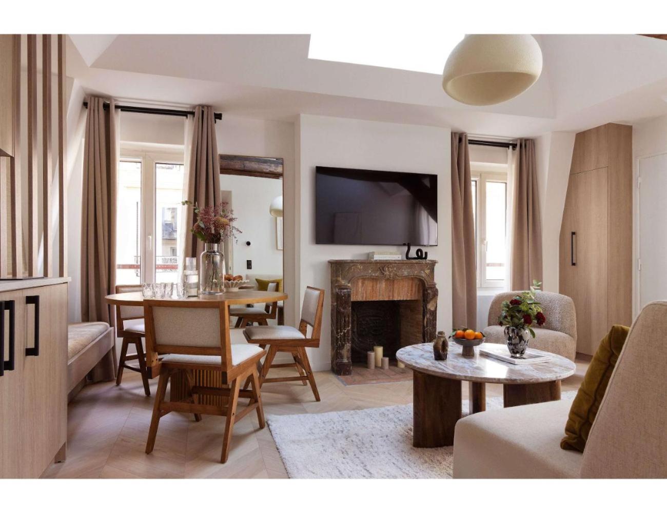 Classic One-Bedroom Apartment with King Bed. This apartment features a fireplace. Boasting a private entrance, this apartment features 1 living room, 1 separate bedroom and 1 bathroom with a shower and a hairdryer. Guests can make meals in the kitchen that has a stovetop, a refrigerator, kitchenware and an oven. The apartment features a washing machine, a tea and coffee maker, a seating area, a dining area and a TV with cable channels. The unit has 2 beds. ;