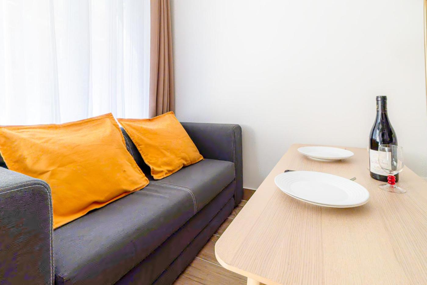 Studio avec Balcon. The well-fitted kitchen has a stovetop, a refrigerator, a dishwasher and kitchenware. This studio is air-conditioned and features a seating area with a flat-screen TV, a washing machine, a tea and coffee maker, a dining area, as well as a wardrobe. The unit offers 1 bed.