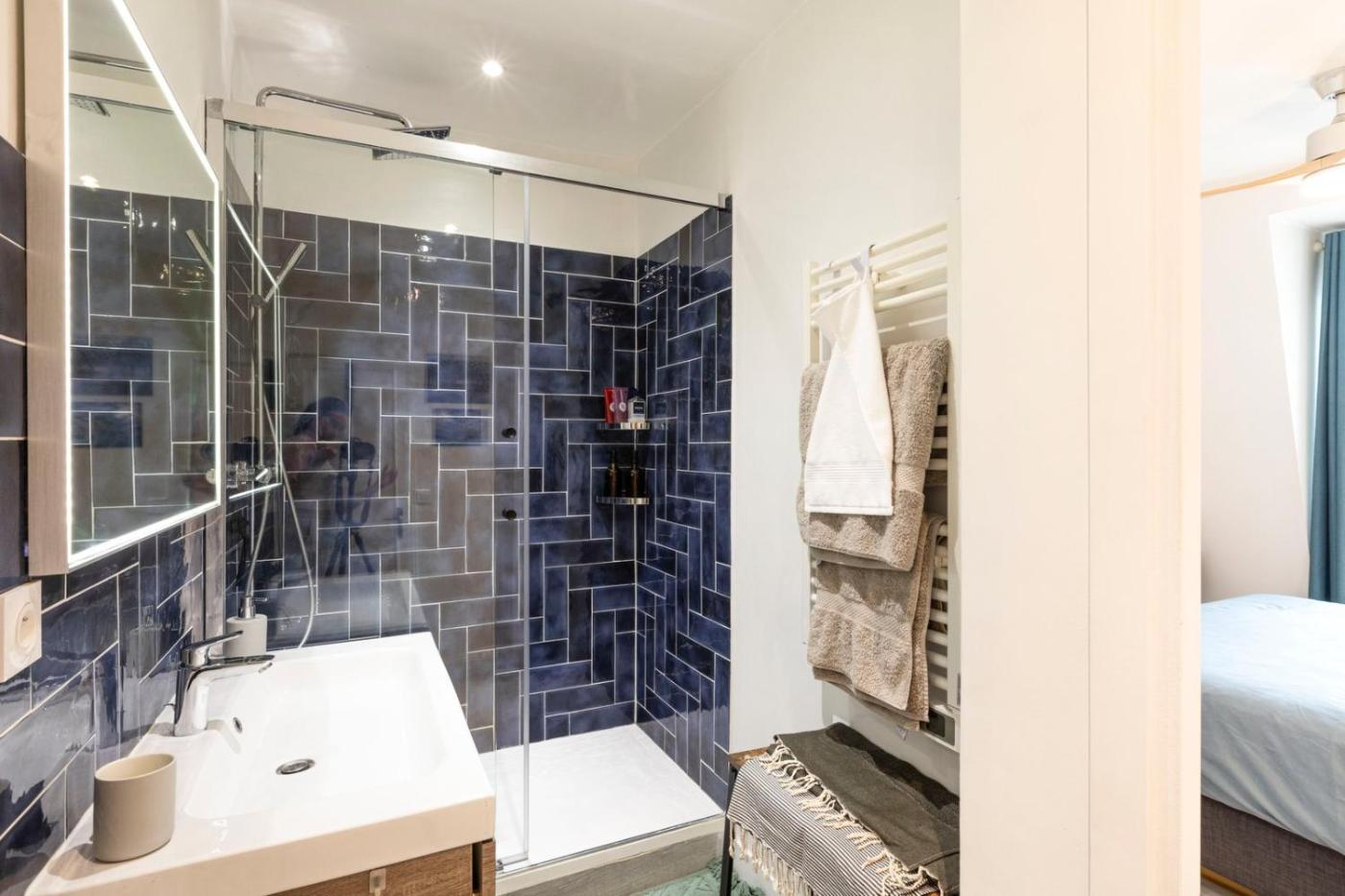 Cet appartement comporte 1 chambre, une cuisine avec un réfrigérateur et un lave-vaisselle, ainsi que 1 salle de bains avec une douche, un sèche-cheveux et un lave-linge. Des serviettes et du linge de lit sont à votre disposition.