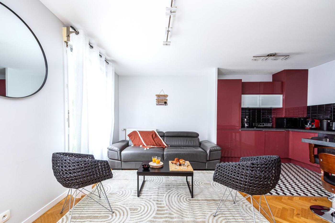 Appartement 2 Chambres. This spacious apartment features 1 living room, 2 separate bedrooms and 1 bathroom with a shower and free toiletries. In the well-fitted kitchen, guests will find a stovetop, a refrigerator, a dishwasher and kitchenware. This apartment has a washing machine, flat-screen TV with streaming services, city views, as well as chocolate for guests. The unit has 3 beds.